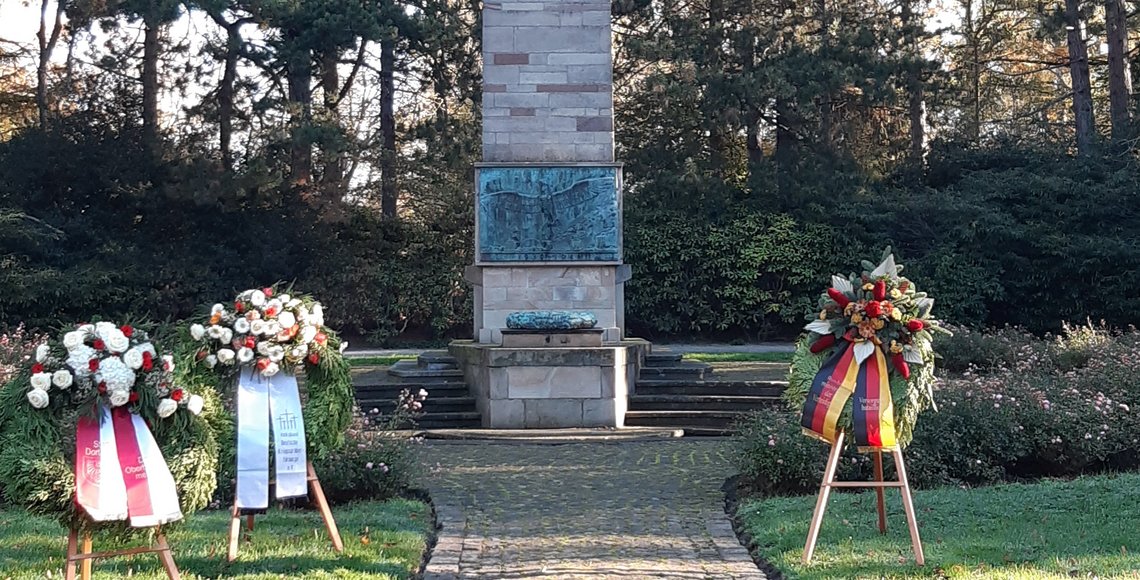 Drei Kränze wurden am Mahnmal abgelegt. Bürgermeister Schilff legte einen Kranz für die Stadt Dortmund nieder, Oberstleutnant Andreas Johannes Golks für das Versorgungsbatallion 7 aus Unna, und schließlich Dr. Stefan Mühlhofer als Vertreter des Volksbundes Deutsche Kriegsgräberfürsorge e. V., Kreisverband Dortmund.