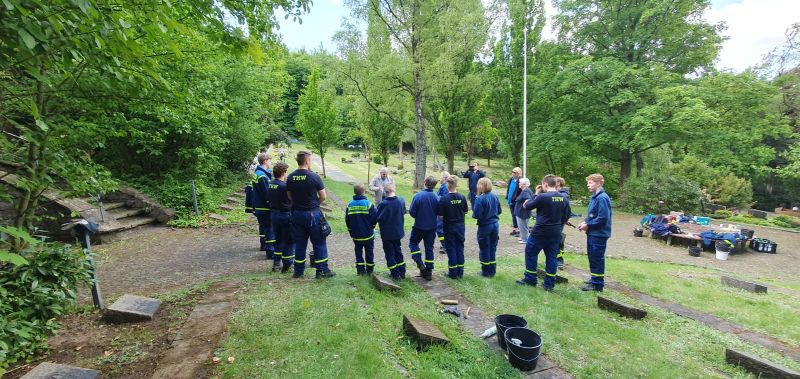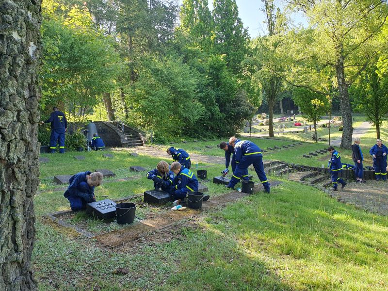 Siegen. Auch diesmal strahlte die Sonne über den engagierten Pflegeeinsatz der THW-Jugend aus Siegen. Kurz nach den Gedenkveranstaltungen zum Kriegsende vor 80 Jahren kam die Gruppe zusammen, um die stillen Zeitzeugen des Zweiten Weltkrieges zu pflegen. Die 12 jungen Teenager säuberten in diesem Jahr die Kriegsgräber auf dem Gilbergfriedhof in Siegen-Eiserfeld. Der Kreisverband Siegen konnte sie dafür am Samstag, 17. Mai 2025 gewinnen.